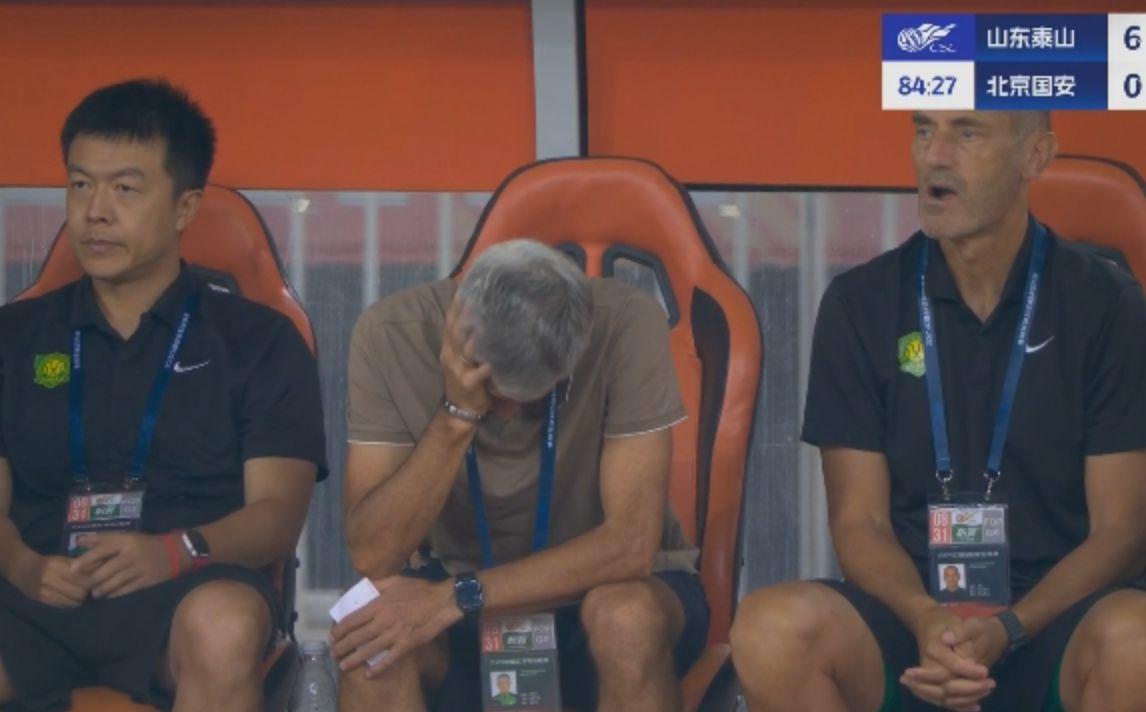 北京时间8月31日,中超赛场再现惨案。山东泰山坐镇主场,迎战北京国安。比赛中,泰山大开杀戒,连进6球,最终6-0屠杀了国安。国安主帅塞蒂恩瘫坐在椅子上。